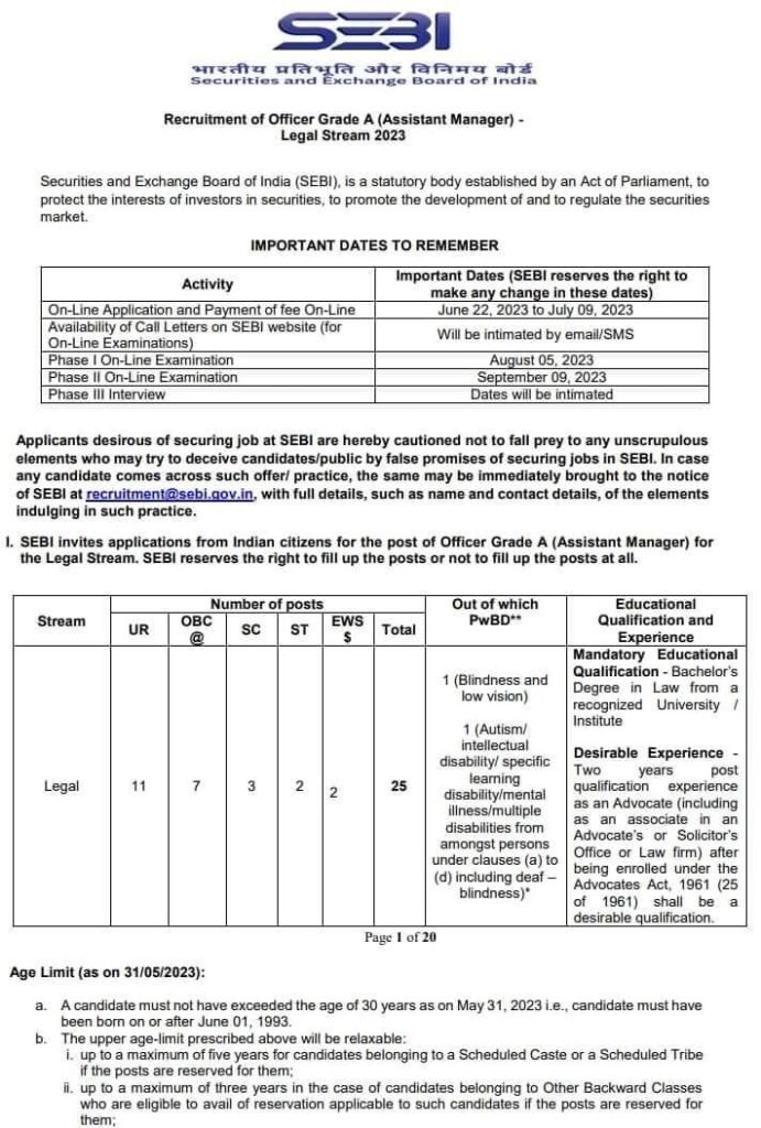 Legal Recruitment news… Leave a Comment / Uncategorized / By admin_nupur 25 Assistant manager (legal) posts in SEBI Share 0 Post 0 Share Whatsapp 0Shares