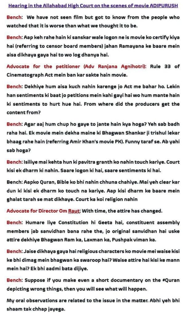 A scene of oral arguments on the movie ‘Adipurush’ in Allahabad High Court. (Not the part of the order)