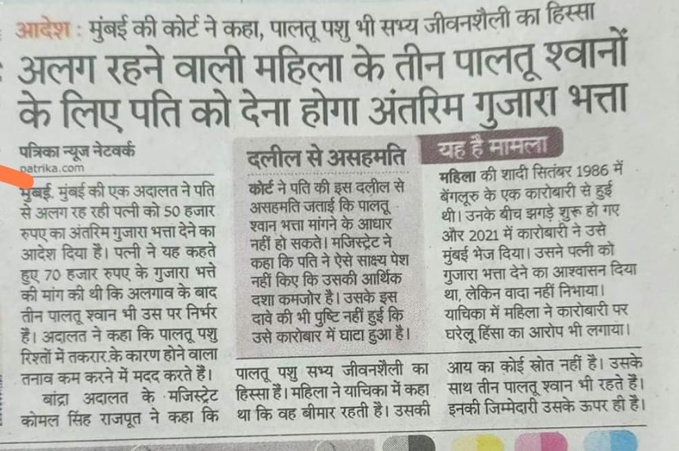 Legal news on…पालतू पशु के लिए भी देना होगा गुजारा भत्ता Leave a Comment / Uncategorized / By admin_nupur Share 0 Post 0 Share Whatsapp 0Shares