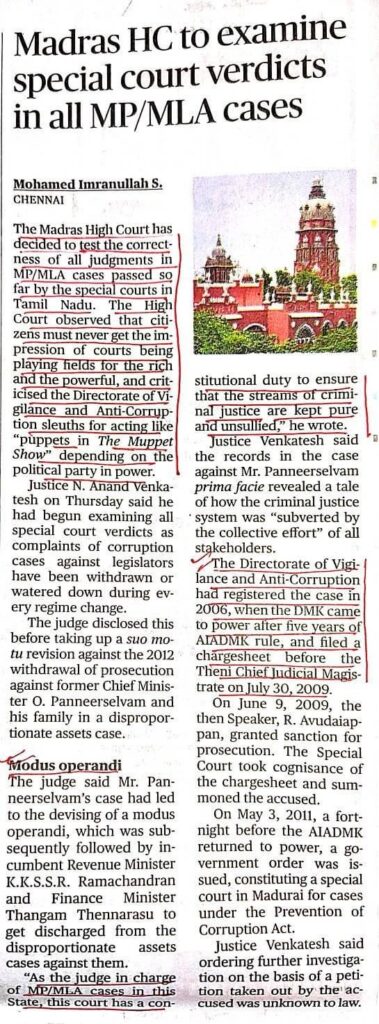 The Madras High Court has decided to test the correctness of all judgements in MP/MLA cases… Leave a Comment / Uncategorized / By admin_nupur Share 0 Post 0 Share Whatsapp 0Shares