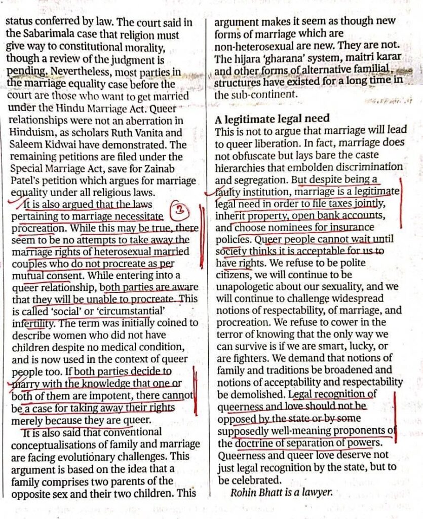 Even though the Supreme Court refrained from granting legal recognition for same-sex marriages, it did make a strong call to the State to take steps to end the discrimination faced by queer couples and to ensure protection for their right to cohabitation.The Court clearly observed that the discrimination faced by the queer community due to the exclusion of same-sex partners from welfare measures due to the heteronormative definitions in laws must be addressed by the State.