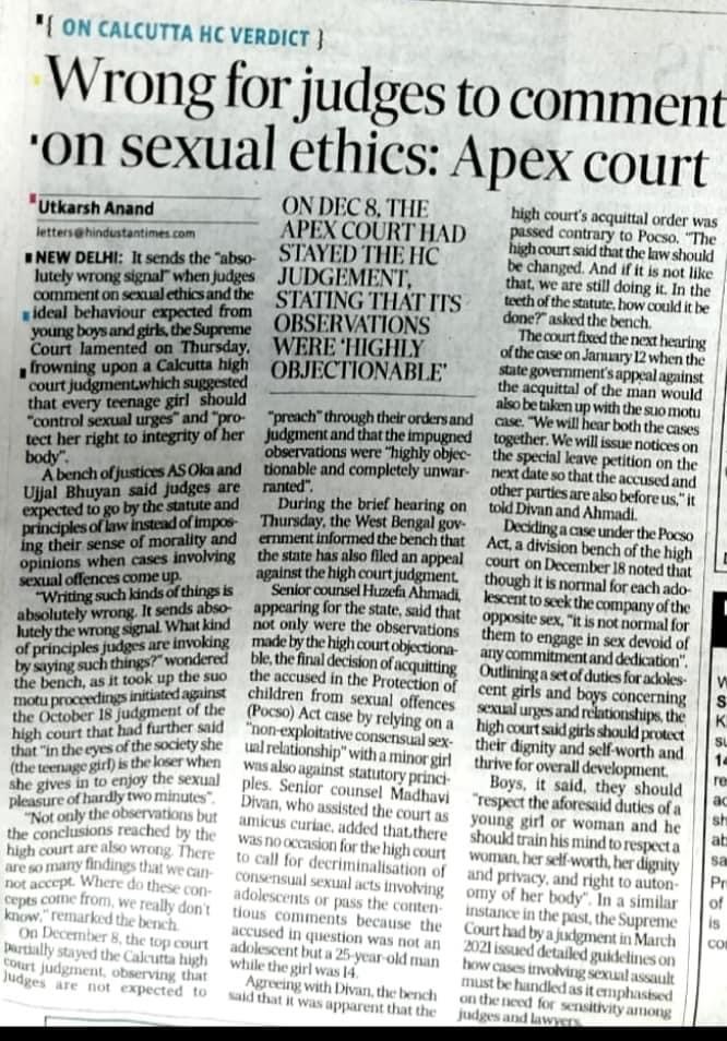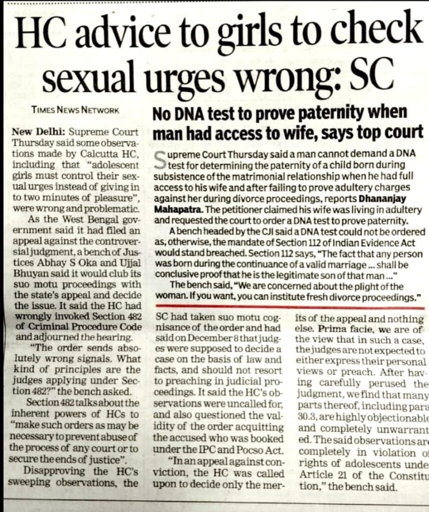 Legal News…High Court advice to girls to check sexual urges wrong: Supreme Court… Leave a Comment / Uncategorized / By admin_nupur Share 0 Post 0 Share Whatsapp 0Shares