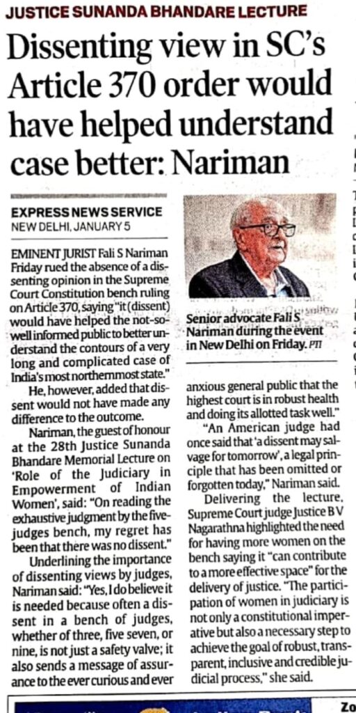 Legal News… Leave a Comment / Uncategorized / By admin_nupur Dissenting view in Supreme Court’s Article 370 order would have helped understand case better: Fali.S.Nariman. Share 0 Post 0 Share Whatsapp 0Shares