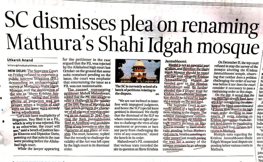 Legal News… Leave a Comment / Uncategorized / By admin_nupur Supreme Court dismisses plea on renaming Mathura’s Shahi Idgah Mosque. Share 0 Post 0 Share Whatsapp 0Shares