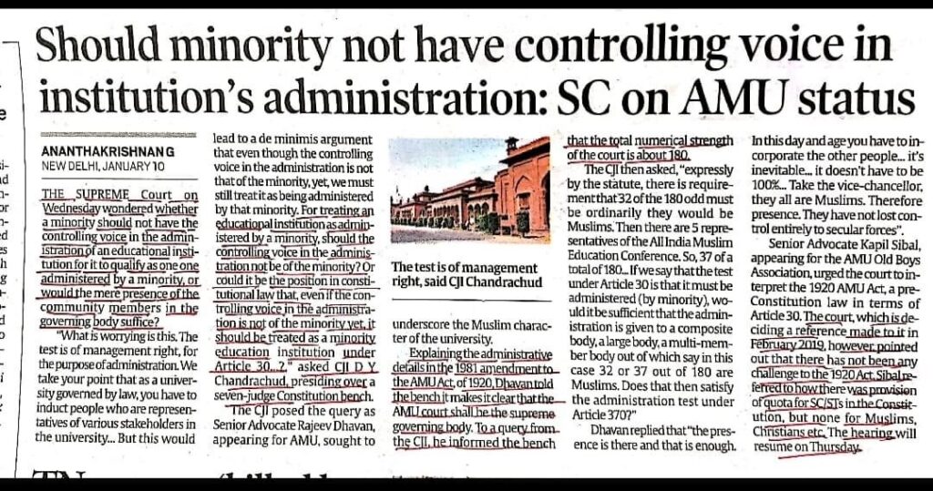 Legal News…Should minority not have controlling voice in institution’s administration: Supreme Court on AMU Status. Leave a Comment / Uncategorized / By admin_nupur Share 0 Post 0 Share Whatsapp 0Shares
