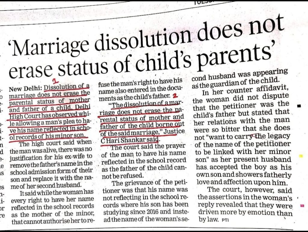 Legal News…Marriage dissolution does not erase of child’s parents. Leave a Comment / Uncategorized / By admin_nupur Share 0 Post 0 Share Whatsapp 0Shares