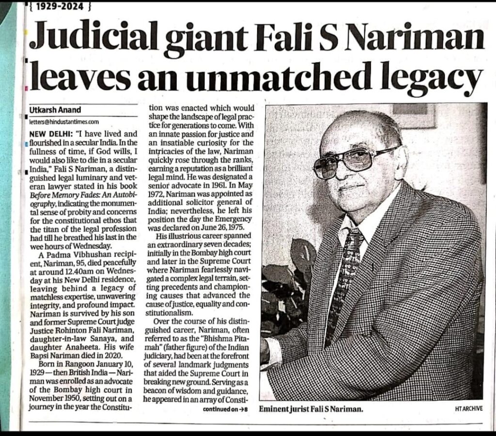 Legal News…Judicial giant Fali S Nariman leaves an unmatched legacy. Leave a Comment / Uncategorized / By admin_nupur Share 0 Post 0 Share Whatsapp 0Shares