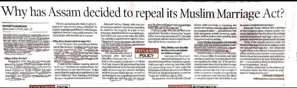 Why has Assam decided to repeal its Muslim Marriage Act 1935. Leave a Comment / Uncategorized / By admin_nupur Share 0 Post 0 Share Whatsapp 0Shares