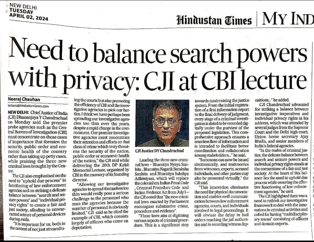 Legal Update..Need to Balance search powers with privacy:Chief Justice of India. Leave a Comment / Uncategorized / By admin_nupur Share 0 Post 0 Share Whatsapp 0Shares