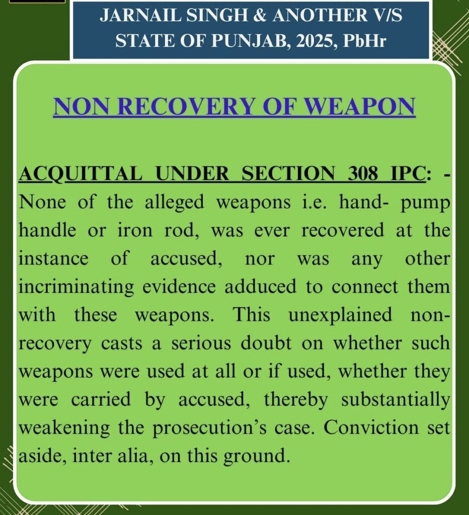 Landmark Judgement on “IF WEAPON IS NOT RECOVERED IN CRIMINAL CASE”… Leave a Comment / Uncategorized / By admin_nupur Share 0 Post 0 Share Whatsapp 0Shares