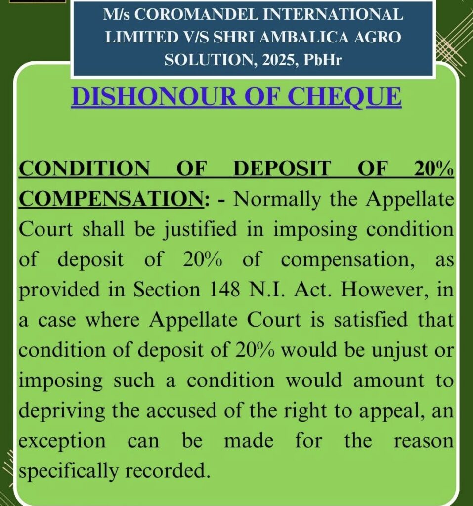 M/s Coromandel International Limited v/s Shri Ambalica Agro Solution,2025,pbhr: Dishonour Of Cheque… Leave a Comment / Uncategorized / By admin_nupur Share 0 Post 0 Share Whatsapp 0Shares