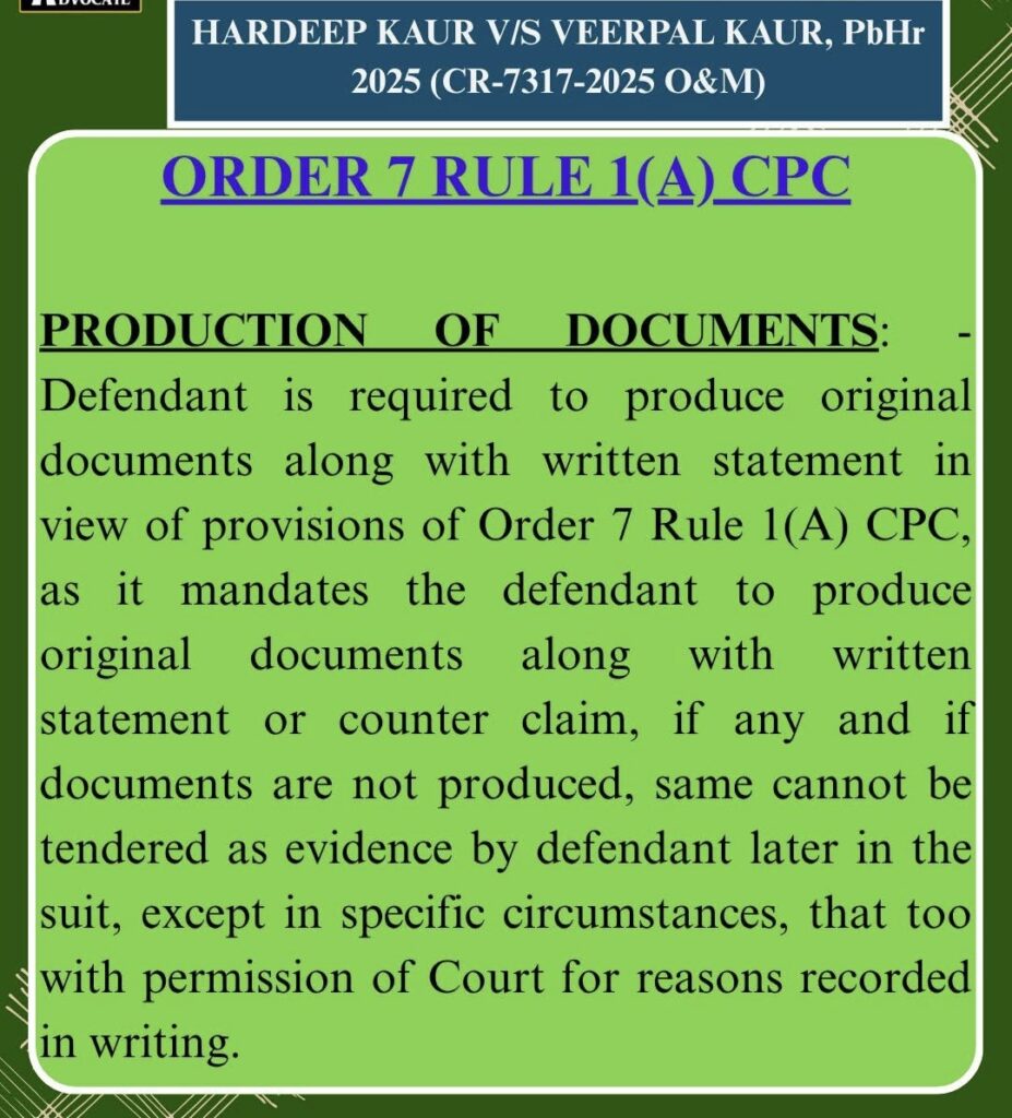 Landmark Judgement on “ORDER 7 RULE 1-A CPC- PRODUCTION OF DOCUMENTS BY DEFENDANT”… Leave a Comment / Uncategorized / By admin_nupur Share 0 Post 0 Share Whatsapp 0Shares