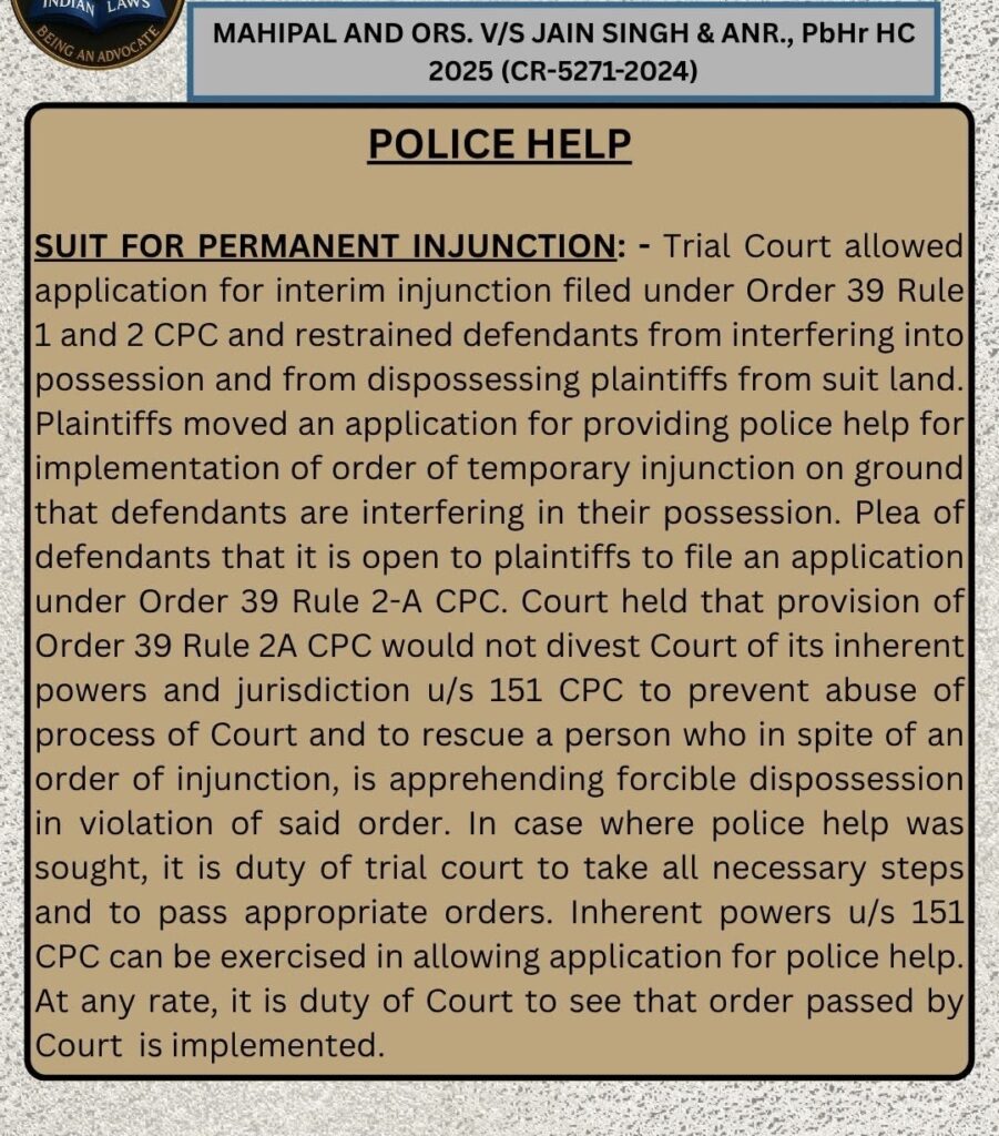 Landmark Judgement on “APPLICATION FOR POLICE HELP WHEN INTERIM INJUNCTION GRANTED TO PLAINTIFF”. Leave a Comment / Uncategorized / By admin_nupur Share 0 Post 0 Share Whatsapp 0Shares